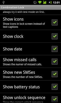 Combination Lock also offers a wide array of options to customize. You can choose the items you want to be shown on the lock screen, or you can even hide them all, so that no one but you knows how to unlock your device.