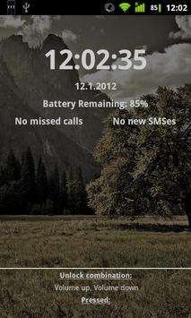 Combination Lock is a keyguard application which can be unlocked with the buttons on your device. You can record you own unlock sequence, which can be just as simple as one button press or as long and complicated as you like. You can use almost any buttons that your device has (volume, back, home…) for the unlock sequence.