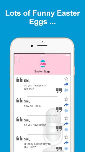 Our Commands for Siri app, gives you over 560 sayings for the SIRI voice assistant. All the sayings are kept in convenient categories and can be shared with friends.