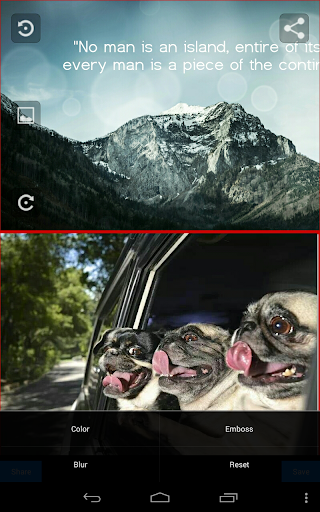 It gives you the power of comparing two pictures by giving you the flexibility of putting them both on one screen .You can rotate, pan and zoom the pictures and share them with other applications.