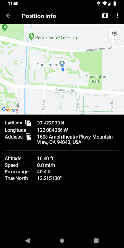 Very useful and interesting app. Gives positional information lattitude and longitude with map and magnetic field information.