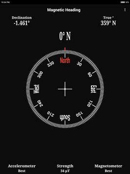 This Compass app shows magnetic heading as well as true heading based on magnetic deflection of the location. This Compass app uses low power location retrieval in case user enables true heading from drop down menu. Shows True North and Magnetic North. This Compass app also shows list of Sensors along with information about Sensor name, Sensor manufacturer/vendor and Accuracy of Sensor. This is a simple and accurate Compass.