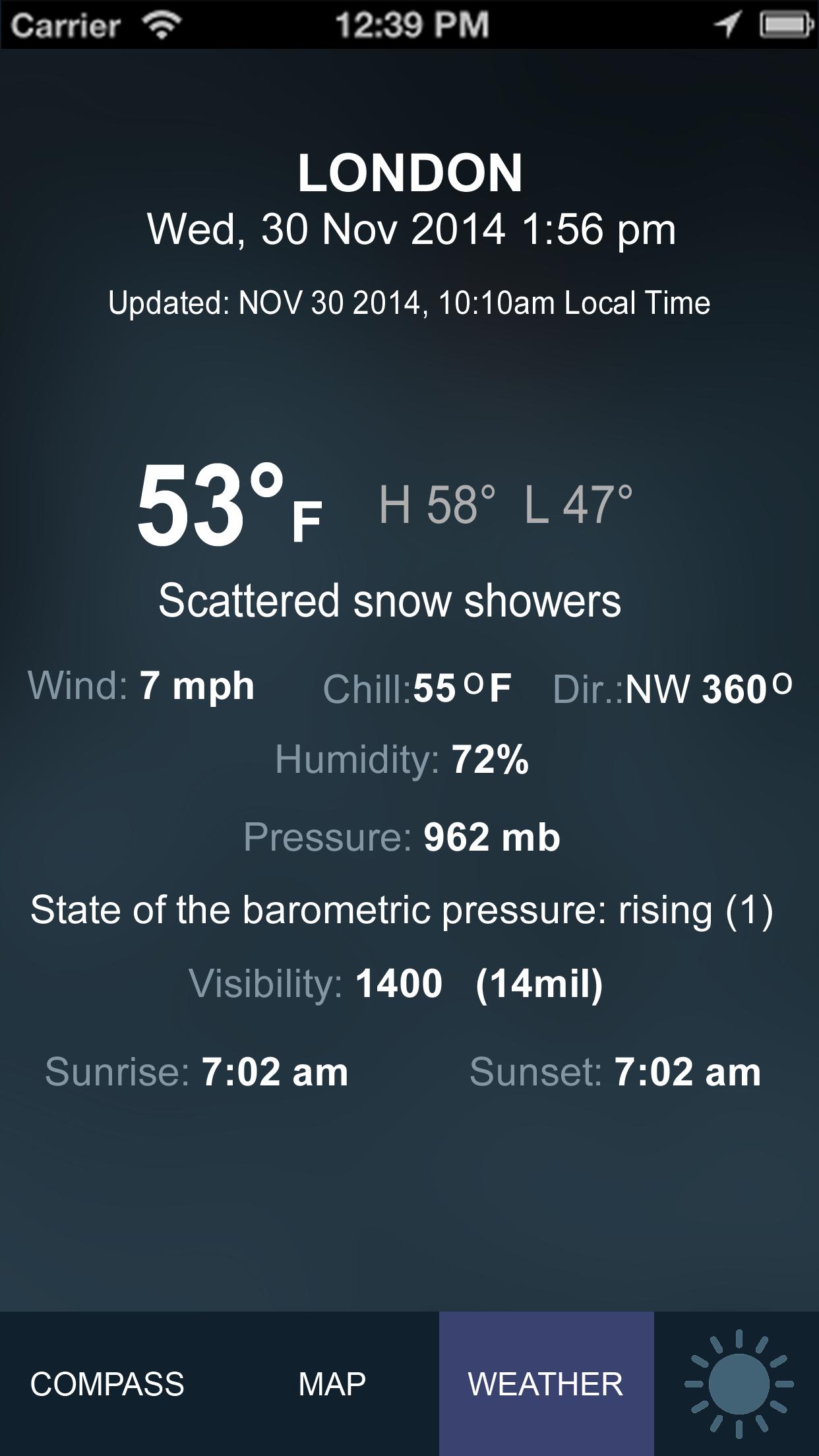 3. Weather (Working when location service is enabled)