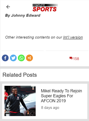 The Complete Sports website (completesports.com) and mobile apps represent Nigeria’s number one, all-sports news brand. Launched in November 2005 and published by Complete Communications Limited (established in 1984), Complete Sports is now the most visited sports website in Nigeria (Global Business Insight, 2018/19).