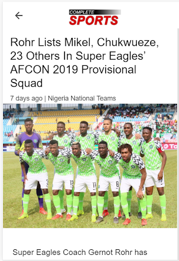 Complete Sports’ primary focus is sports news about Nigeria and the exploits of Nigerian sportsmen and women both at home and abroad, particularly the footballers.