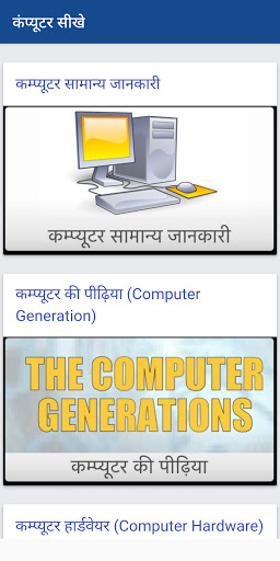 This Computer Course in Hindi (Learn Computer in Hindi) application is specially designed for the people who want to learn the basics of the computer operations. You can learn operating a computer in just 15 days by using Computer course in hindi app . This application is in HINDI and explain all the things very clearly with images and simple text, so that anyone can understand and learn computer course in hindi. It does not require you to be an expert in computer programming or english to learn computer basics.