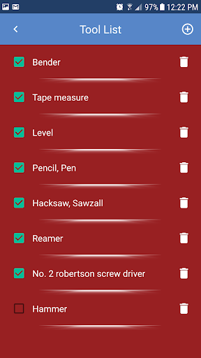 The TOOL LIST and MATERIAL LIST are just generic check lists that we made up, but if you don't like our set up you can create your own. The list will be saved within the app.