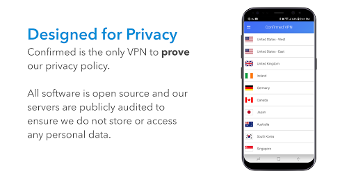Confirmed VPN is the only Openly Operated VPN, with continuous third party audits & completely open source code to ensure and protect your privacy. Get started today to gain online anonymity while using websites and apps with the tap of a button.