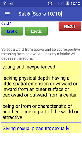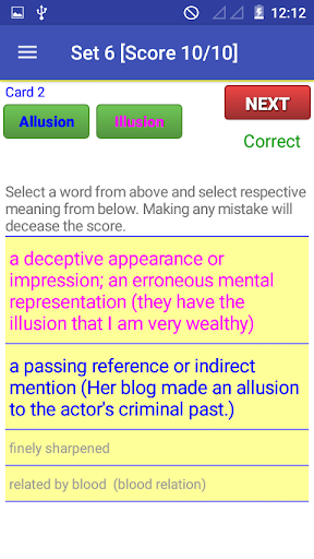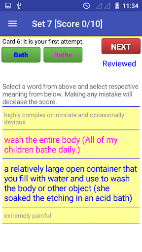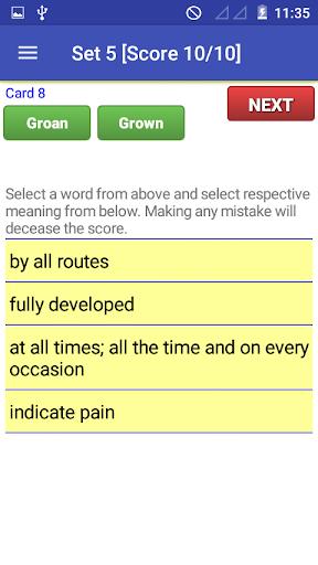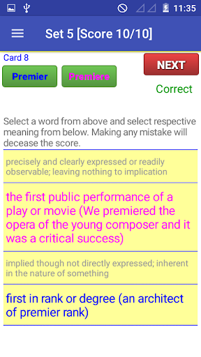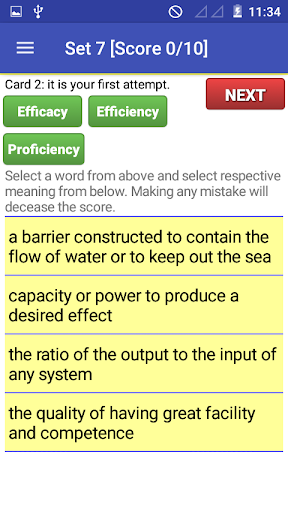 A practice section added with 50 sets of practice sessions. Users can easily increase their vocabulary by practicing on these sets. Each set contains 10 similar words card to practice.