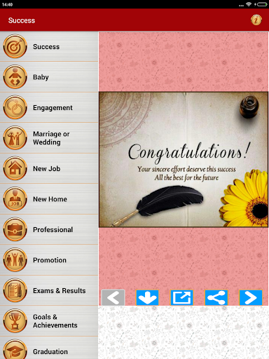 Congratulations Wishes Greeting Cards Full Pack is a Free app of Beautiful collection of congratulation messages on beautiful pictures that you can share email or download in just single tap.