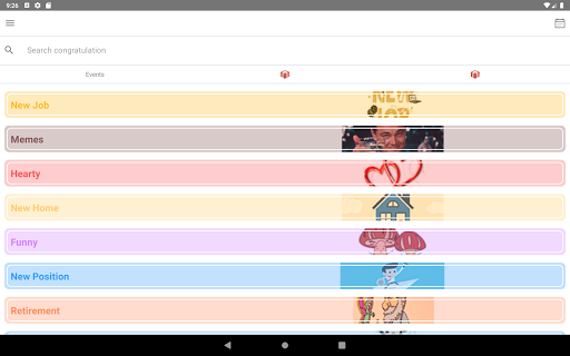 Also with our app, you can find a lot of greeting cards for any holiday. To make your search more comfortable we put the most popular of them into our list, so you can find them there.