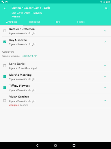 * Take attendance and have attendee data handy (allergies, notes, contact info, etc.)