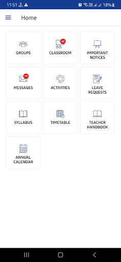 1. A dashboard with all features like Groups, Homework, Classwork, Activities, Messages, Notices, Leave Request, Annual Calendar, Teacher Handbook, etc.