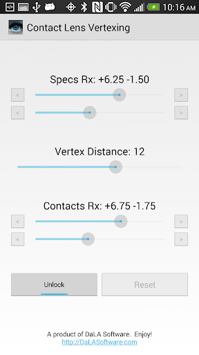 This is a free vertex distance calculator for use in Optometry that supports both sphere and cyl conversions. This was essentially a Christmas present for my wife, who's a student at UHCO (University of Houston College of Optometry). However anyone is free to use it. 100% free and NO ADS. Please rate the app if you like it!