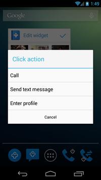 Click action selection per contact: call, text, send WhatsApp message or open contact