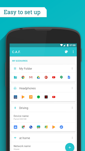 C.A.F. works on top of your existing launcher, so you can continue to enjoy the benefits of your existing launcher and enhance it with contextual features.