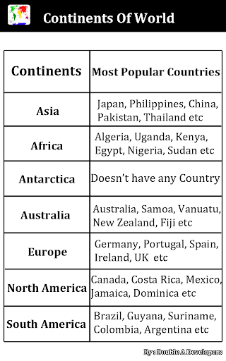 This is a very small but very informative application. This app is specially developed to promote education about continents. Continents Of World is the first application on play store about continents. This app will be very handy for kids to learn about continents.