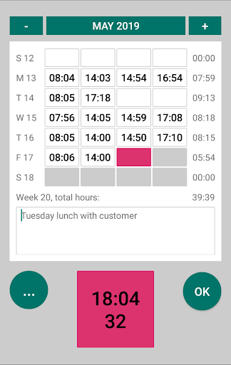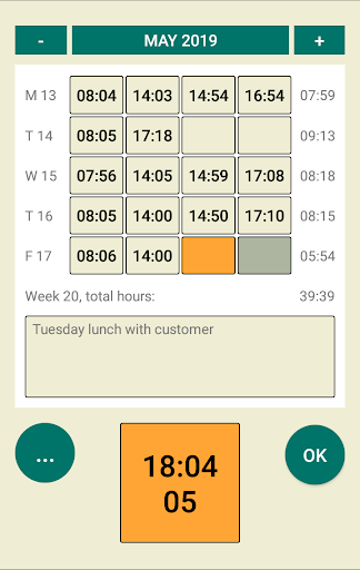 Working Time is a simple tool to store every start and end of your work day including break time with just one click and so you can track the time schedule for your personal control.