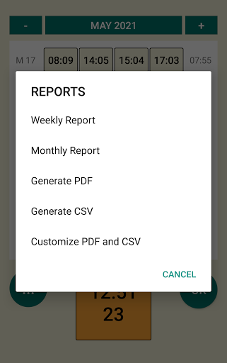 Now you can generate PDF or CSV reports with your time records.