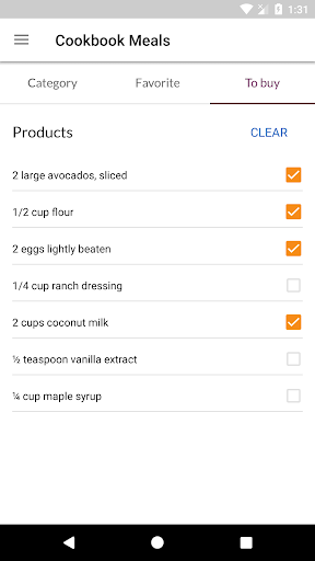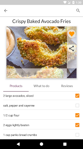 - enjoy section To buy - just add the products from the recipe here and use the shopping list when you go to the store. The application works offline, so the list of products for will always be with you