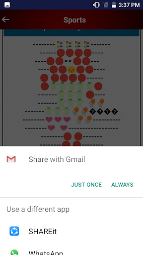 * Easy to Share Emoji via Gmail Facebook Google Whatsapp and other Social networking sites.