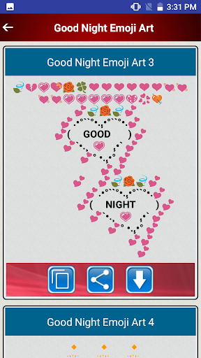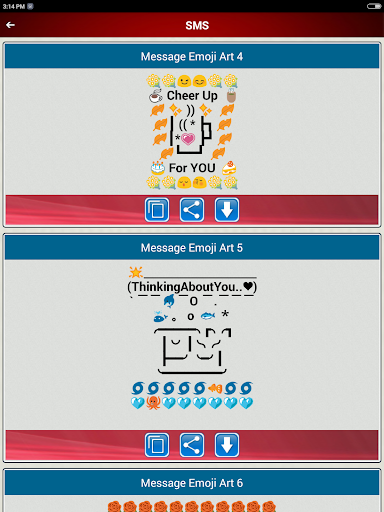 Emoji Art Sharing & Copy Paste App brings you latest and Variety of popular Emoji to express your emotions in a very funny way. In this app you will find various type of Emoji like Animal Birthday Food Fun Girls Good Morning Good Night Love Heart Miss You SMS Sports etc. This Free Android App offers you a new way to express your Anger Love Happiness to your friends and family members with wide variety of Emoji text arts. With this app you can simply copy and paste to send your selected Emoji to express your feelings.