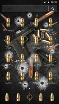 Do you like to play Military War game? or Do you like Weapon theme? if yes, then this Cool Gun & Bullet Theme for you. This Cool Gun & Bullet Theme is designed on pistol gun live wallpaper with silver bullet icon pack. It has gun and bullet screen lock with fire gun on sniper gun wallpaper. The gun and bullet theme has sniper gun and bullet icon pack for 100+ popular apps. You can get Cool Gun & Bullet Theme with pistol amazing fir decorated wallpaper and cool golden bullet design apps icons pack! Cool Gun & Bullet Theme is an Android mobile theme with 3D effects, 3D weather, delicate app icon packs and burning AK47 theme wallpaper. Cool Gun & Bullet Theme is supported on most Android devices. Install the theme for a 3D home screen and to make your phone look coolest! Cool Gun & Bullet Theme will make you look cool and fury shooting style. Fire gun and bullet design home screen wallpaper for your android phone, this will look amazing on your mobile screen. No matter you love sniper shooter theme or arm theme or bullet theme you will love this Cool Gun & Bullet Theme with gun and bullet weather widget and clock widget FREE.