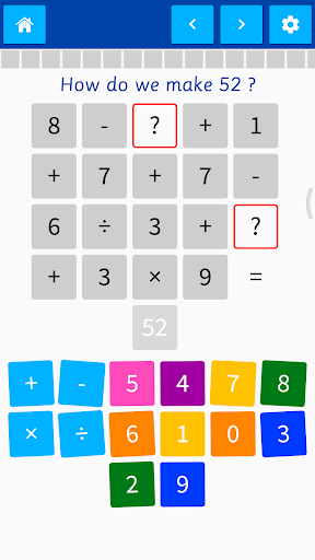 2) “How do we make Numbers” on the other hand is flexible to be used from 1st grade to any age group. The app generates a math equation where the user has to guess the missing number. Depending on the difficulty level, the operation can involve addition, subtraction, multiplication and division of higher numbers. Also, a question might have two blank pieces to fill.