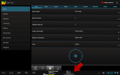 Press Show Panel button to enable dashboard. You can drag floating window over the screen or double tap to open settings. See video and screen-shots for details.