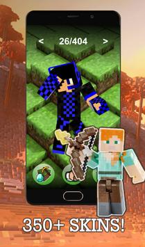 Cool Skins for Minecraft PE (Pocket Edition) allows you to choose and apply a skin to your Minecraft character for free with just the touch of a download button and browse in minecraft app.