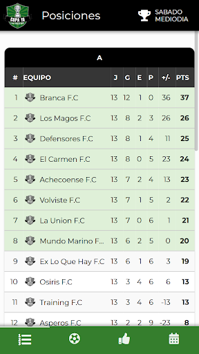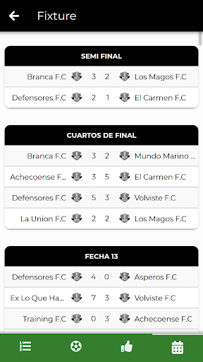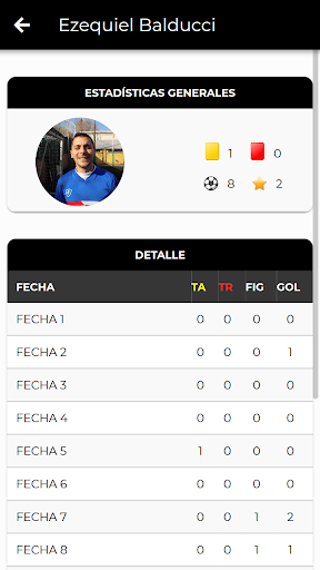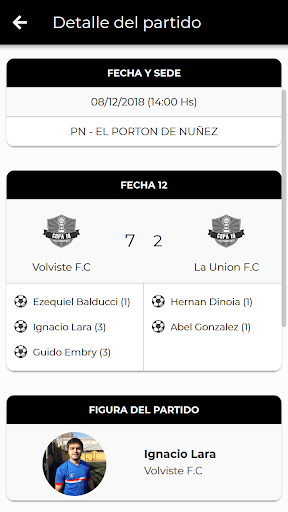 - Historial de partidos jugados por el equipo en el detalle del mismo
