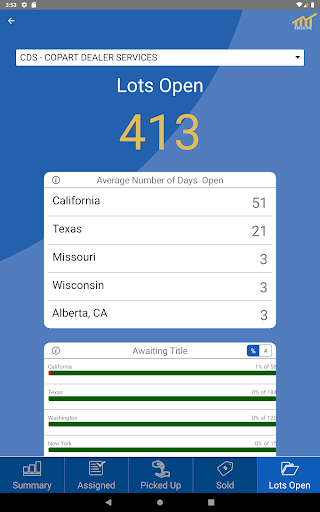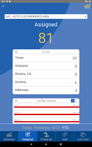 • Assigned lots report that provides you with state-wise number of lots assigned to Copart.