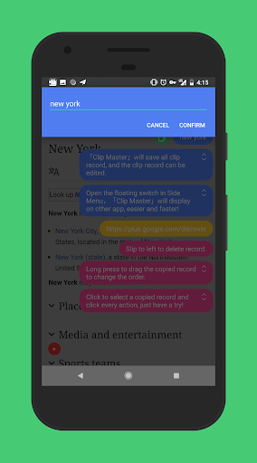 - Copy Actions’s floating ball can display on other Apps, click it to enter the app to operate efficiently!