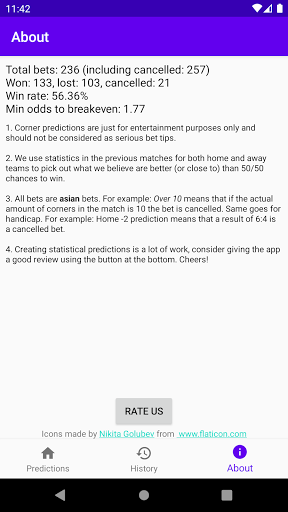 We provide a prediction history and our aim is to win at least 50% of the predictions.