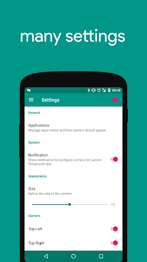 Most hardware cases of devices are designed with rounded corners but display itself has squared corners. This application will round your display corners to merge it with your case corners.