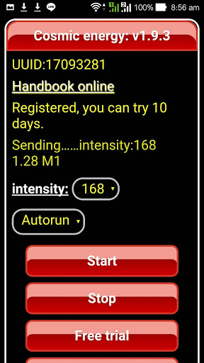 The setting is easy to operate. Press the free trial for the first time and it will be automatically activated online. Then, you only need to select the intensity and press the start execution button. If it is set to the automatic mode, it will run automatically after the second program is started, without pressing any button. Then something magic happened. The chakra energy magnetic field will be continuously transmitted to this application. You don't need music or any high-frequency sound waves, you can receive energy through your mobile phone. Then with the pendulum test to know some human emotions or wealth answers.