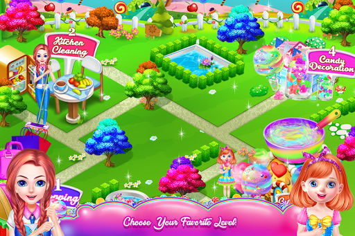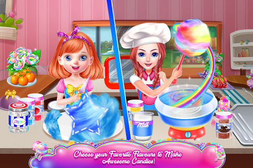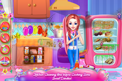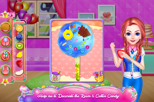 You will bake, but you will also have different things to accomplish in order to get your dessert done. That flavored cotton candy will be build during four major steps: purchasing the needed items, cleaning the kitchen, cooking the sweets and in the end decorating them. So, take a basket and put in all the required ingredients for your cotton candy. Find the items from the shopping list, pay for them and come back to the kitchen where another challenge awaits. Here you will prepare the place to be a proper environment for a good cooking. Perform cleaning activities and make sure that each part of the kitchen will be washed. The floor is a mess and you must collect the garbage as well as the wet spots. There is spider web spread all over and the windows and the fridge are full of dirt. Also, the rotten food from the fridge must disappear. Next, you will use the purchased items and follow the steps to make the dough for the cotton candy. Combine ingredients and mix them together and don't forget one ingredient from the recipe because it could ruin your bake. The color of the cotton candy will depend on the flavor you've chosen. With the special device, that turns the dough into cotton candy, you will also create the shape of it. Now you will have to decorate the goodies with eye-catching details. Use multiple colors while you put decoration items on your dessert. Fruits, glazes, sprinkles, yummy details and tasty looks; these are few of the final decorations you will add. Besides the sweets decorations, you can have the room dolled up as you wish.