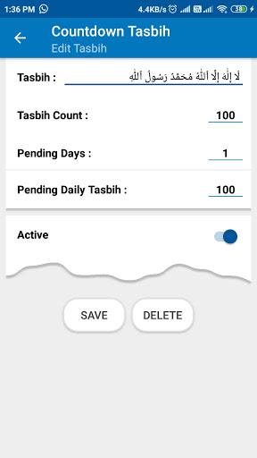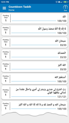Along with daily tasbih count, app will also keep records of the days. Hence, incase if you skip a day, it will show you the total pending days when you open the app next time.