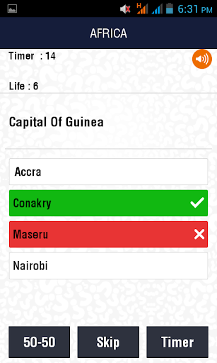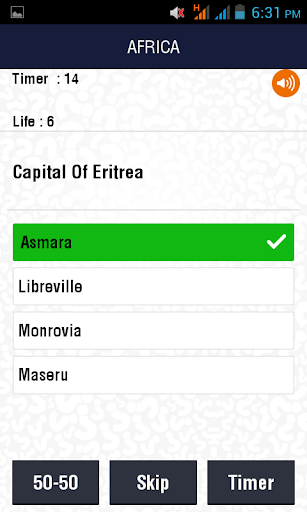 This Capitals Trivia will only end when you lose all your lives (8 provided). Timer of 16 seconds has been set for each question to test your quickness. A total of 3 lifelines are also given. SKIP QUESTION, TIMER RESET and 50-50 lifelines can be used to increase your score.