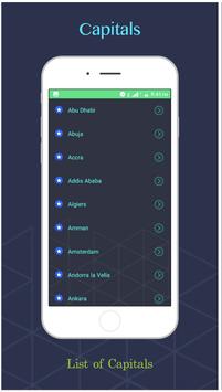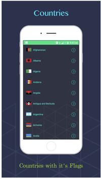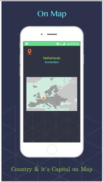 Country & Capital App provides information about all the Countries, their Flags, their Capitals & their Geographical locations & there is a Quiz to know how much you have learnt.
