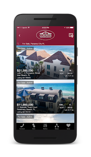 Use Counts Mobile anywhere while you are visiting or even just living here in Bay and Walton county Florida! Load it up while you are on the go and see all Condos, Single Family Homes, Commercial Listings, and Townhomes for sale that are right in the area of your device!