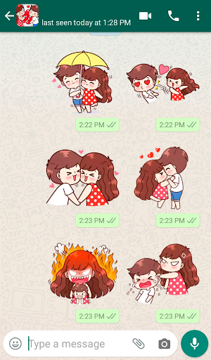 Provide you a series of beautiful love stickers to make you chat and make your chat look romantic and colorful. So you can send cute and romantic couple love and emoji stickers directly on WhatsApp. You can send wonderful loving messages to lovers and friends without having to pass lengthy content.