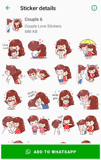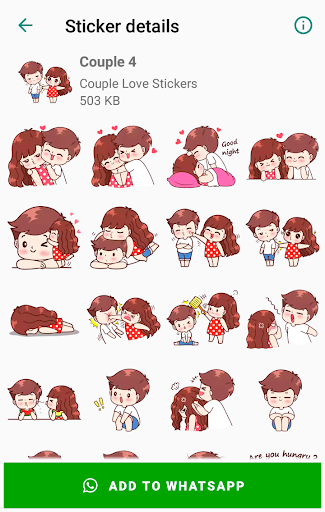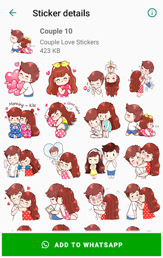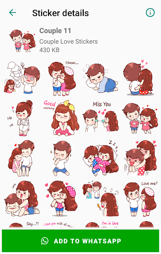 Couple Love Stickers WhatsApp is a collection of the best love stickers that can be easily shared with friends and on social networks.