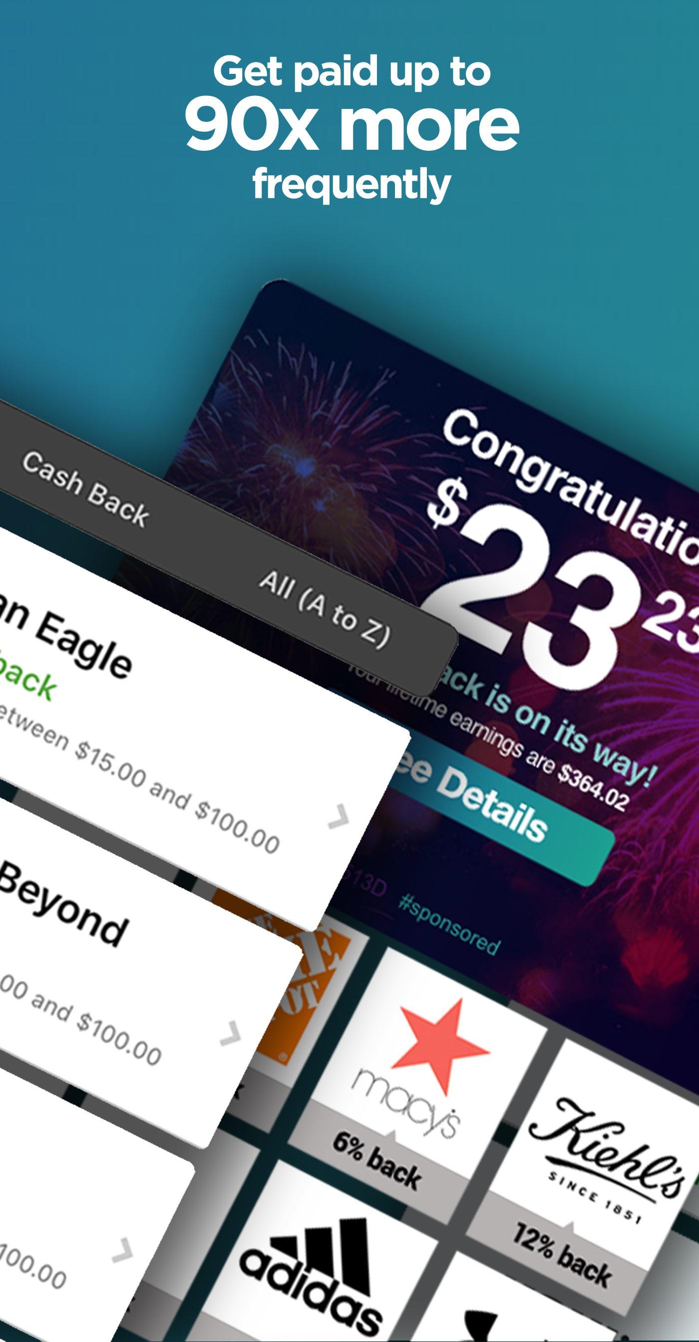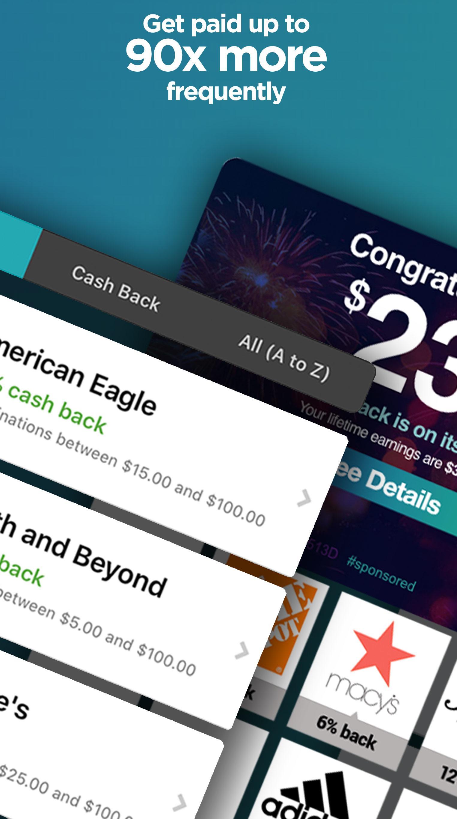 • Earn up to 20% cash back on online purchases from over 3,500 stores