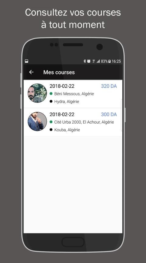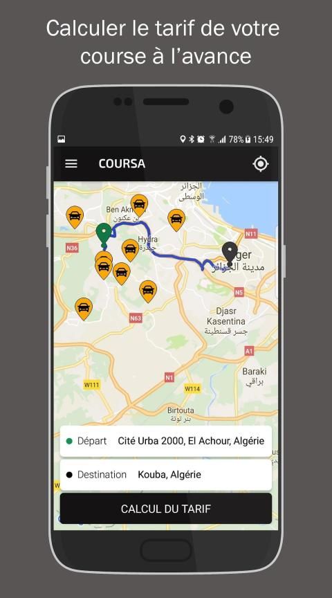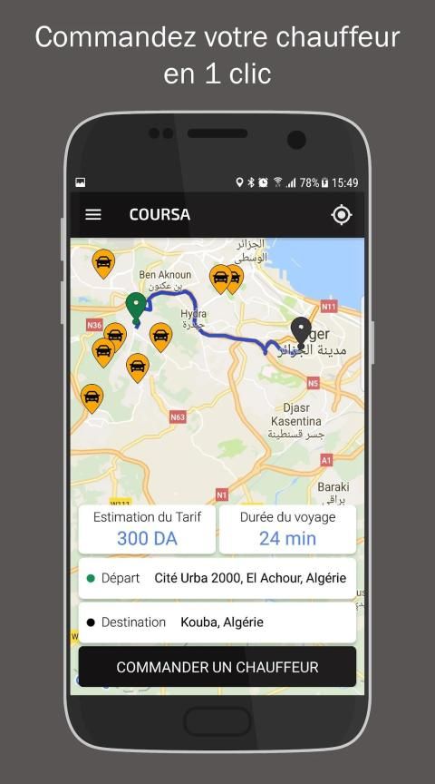 Coursa est disponible pour l'instant seulement sur Alger.