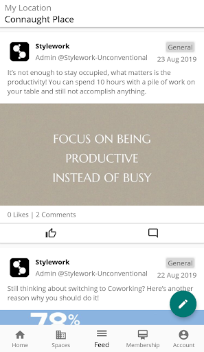 At Stylework, we allow you to choose from multiple working spaces - co-working cafes, co-working spaces, corporate lounges, where you can work at, while sharing a range of other facilities with their co-tenants (WIFI, Working Stationary, and Complementary Beverage). This personalization enables you to integrate your lifestyle with your work style and plug into a like-minded community. When you work alongside people that share a similar passion, it creates an instant camaraderie and support system that is hard to find, working alone. Also socializing keeps people happier and balanced, leading to more work productivity long-term. We provide you with a platform that attracts people of diversified backgrounds and industries creating the best smorgasbord of talent. The interaction and sharing of perceptions in such an environment promotes the participants’ inspiration and contributes positively to the development of your business.