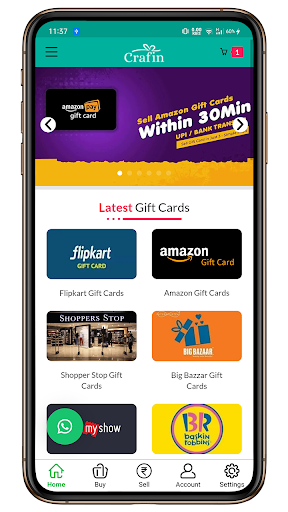 You can sell your flipkart gift card , Amazon gift card , big bazaar gift cards.We have also 30 Min payment settlement for Amazon Pay gift card.