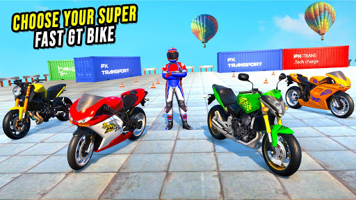 This gt stunt Bike racing games is here with four amazing racing and Bike stunt games modes with a huge variety of all type of Bike to get the master superhero driver tag of mega ramp extreme stunts Bike racing game. gt Bike stunts mode will give you the full control of all racing Bike gt racing stunt gt Bike in which you will experience driving of top speed Bike with a mixture of mega ramp stunts. Bike mode stunts mode will encourage you for the challenging missions by performing gt ramp Bike stunt racing on various ramps and impossible stunt tracks. Mega Ramps mode will take you in the sky for crazy Bike stunt racing where you will get the huge excitement of impossible tracks with super-fast racing Bike. So, enjoy crazy Bike stunt driving in best Bike stunt racing game. It is a unique Bike stunts racing game with extreme impossible tracks. This mega ramp 3D racing game will give you a chance to drive all vehicles on vertical ramps. Enjoy the realistic mega ramp stunts Bike controls to ensure the real experience of mega ramp stunt Bike racing game. Perform vertical ramp impossible tracks extreme Bike jumps, dangerous Bike stunts and crazy Bike drifting. Prepare yourself for the extreme challenging modes of Mega Ramp - Bike Stunt Racing: New Bike Games 2021.