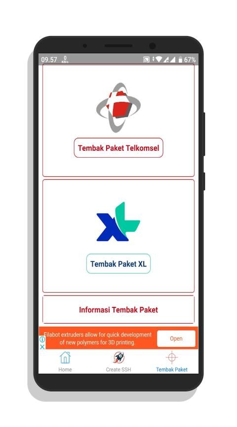 Tidak hanya membuat akun ssh saja, didalam aplikasi ini anda juga bisa melakukan tembak paket internet secara mudah dan murah pastinya. Karna paket internet yang disediakan di dalam aplikasi ini tidak ada di dalam menu public operator selullar itu sendiri. Jadi disini anda bisa mendapatkan paket internet dengan kuota besar dan harga murah.
