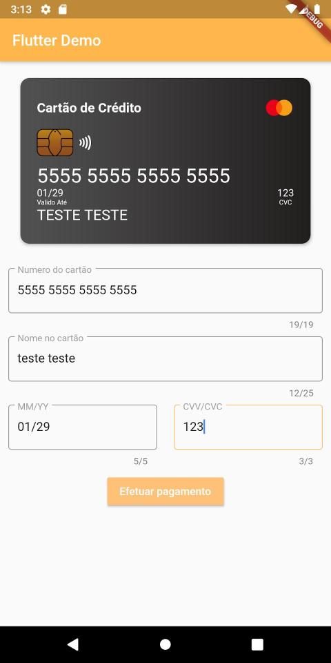 Pacotes utilizados: flutter_credit_card_detector e cielo_ecommerce.